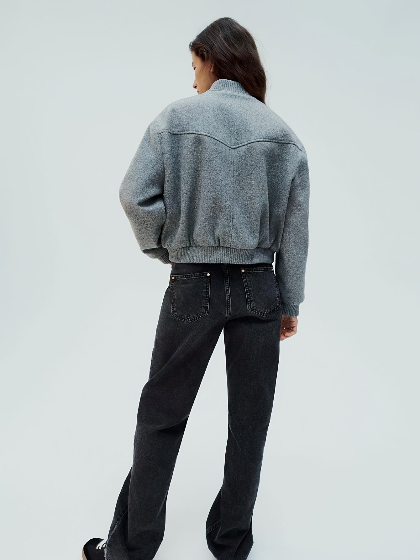 Den klassiska baseballkragen och den enkelradiga dragkedjan ger jackan ett sportigt men ändå elegant uttryck. Den enfärgade designen och tidlösa siluetten gör den till ett mångsidigt plagg som är lätt att kombinera med olika outfits — från casual till något mer uppklätt.