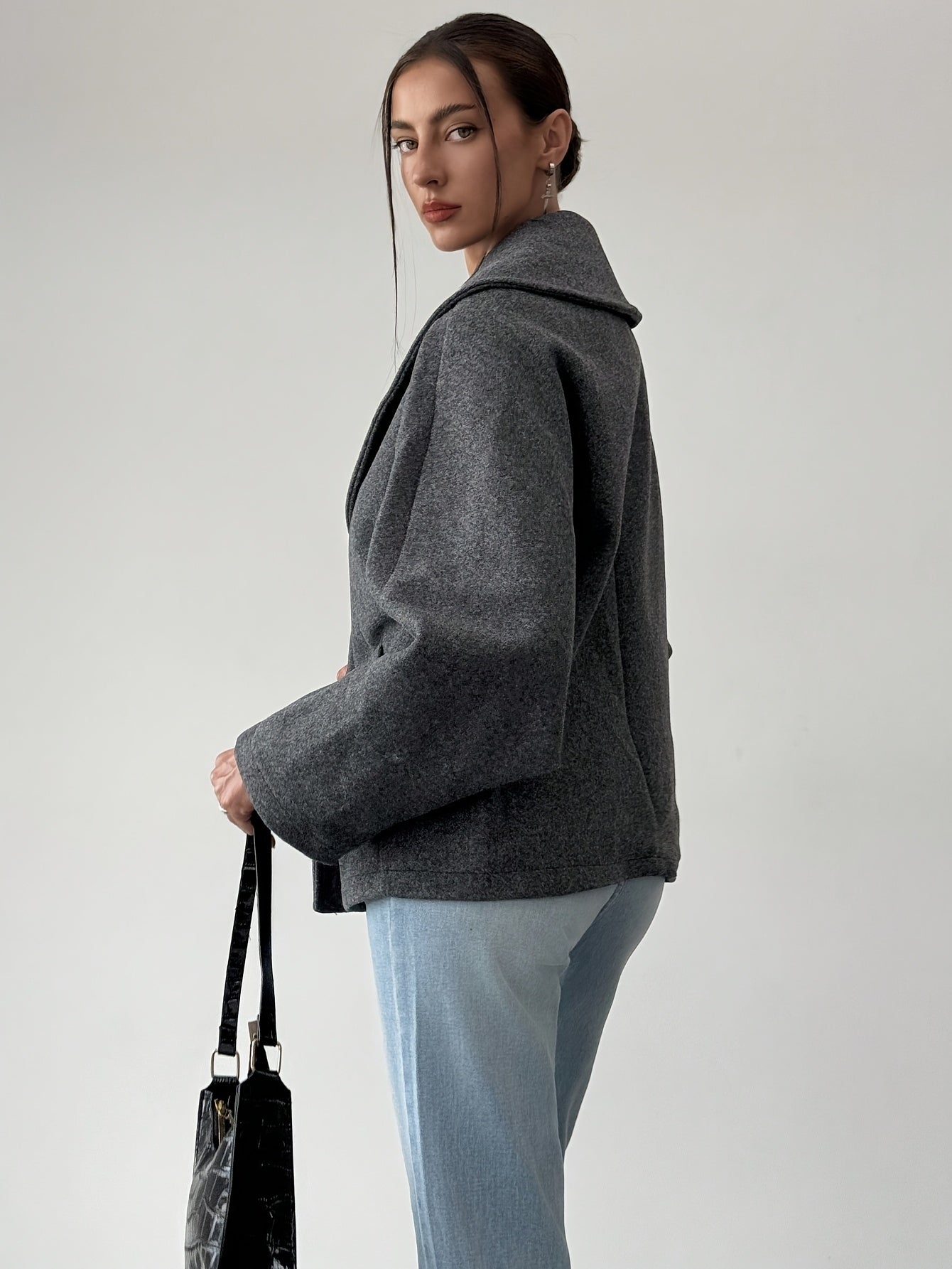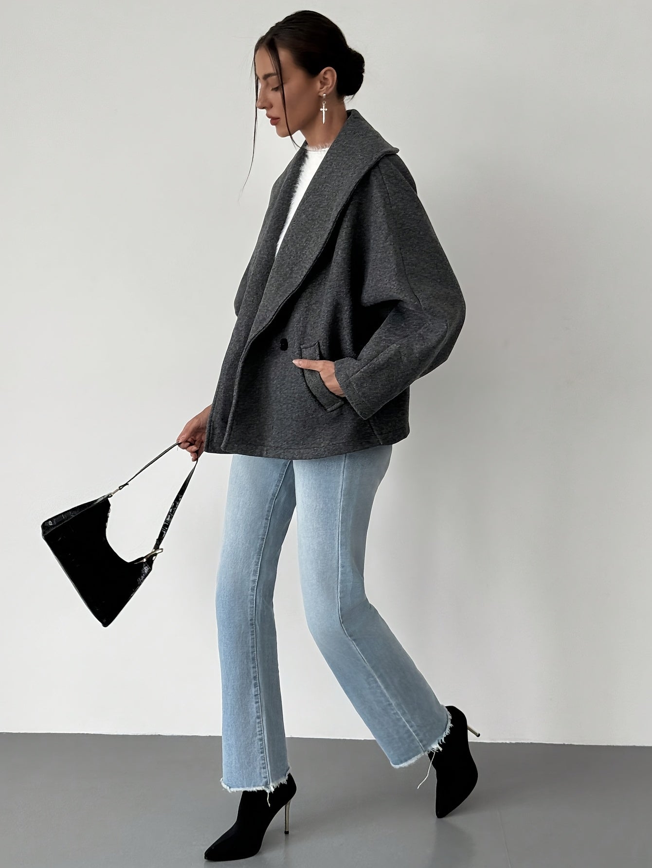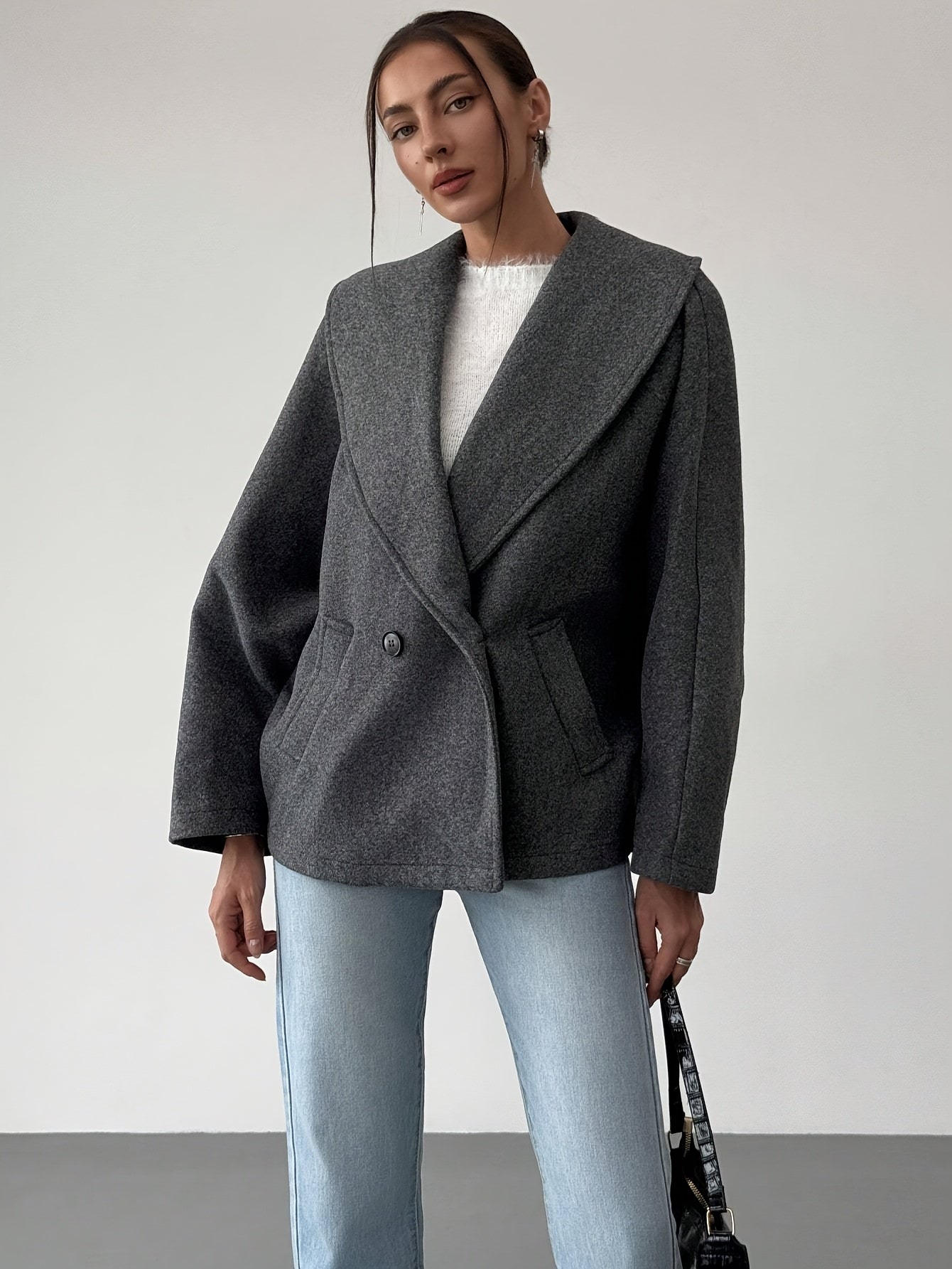 Den enfärgade designen och den släta finishen gör plagget mångsidigt och enkelt att kombinera med både avslappnade och mer uppklädda outfits. Tack vare sidfickorna är jackan inte bara elegant utan också praktisk för vardagsbruk.