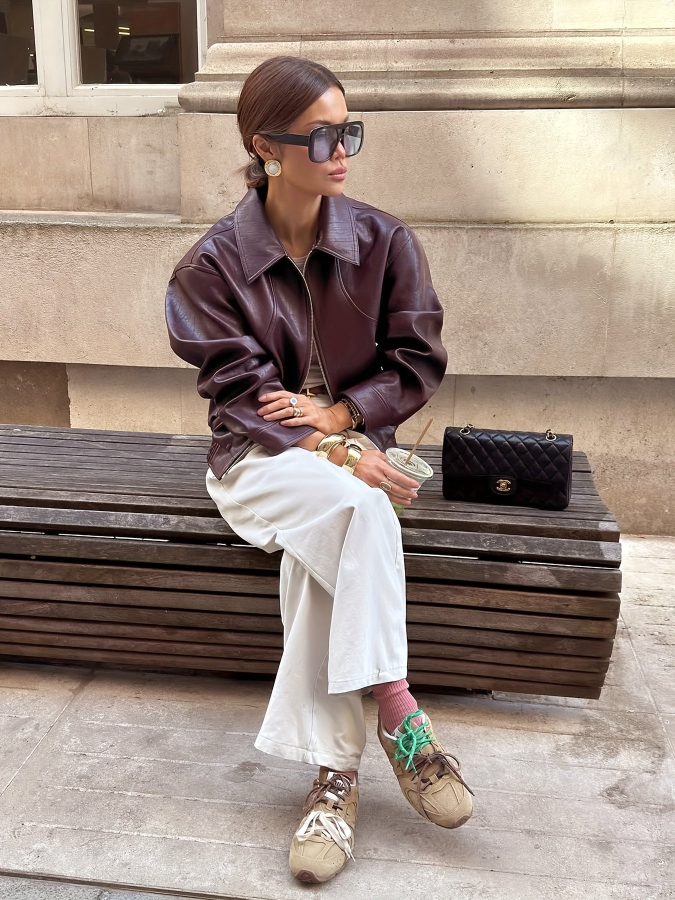 Jackan har en normal passform och är tillverkad av högkvalitativ polyesterfiber, vilket ger komfort och hållbarhet. Tack vare den strukturerade leather look-designen får jackan en sofistikerad och tuff look, idealisk för avslappnade helgaktiviteter eller en stilfull vardagsoutfit.